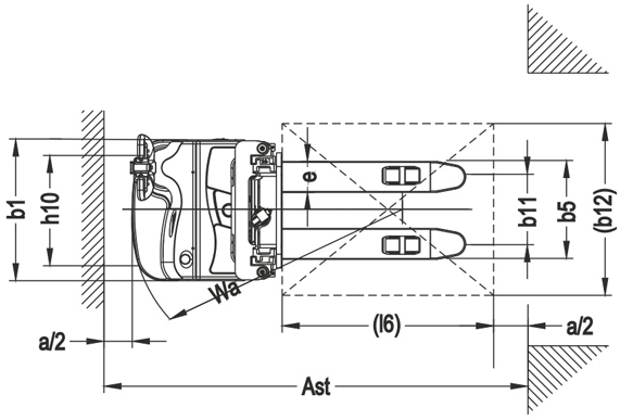 | Aisle width for pallets 800×1200 lengthways | Ast(mm) | 2450 |