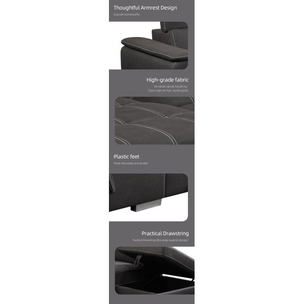 Selling point | Ottoman with storage ! Keep the house clean all the time! Practical Drawstring, Change sofa to bed at a moment ! To Sit ! To Lie ! To Sleep ! To dream! Freely Choice ! Excellent fabric , Attractive and durable Headrests can up and dowm |