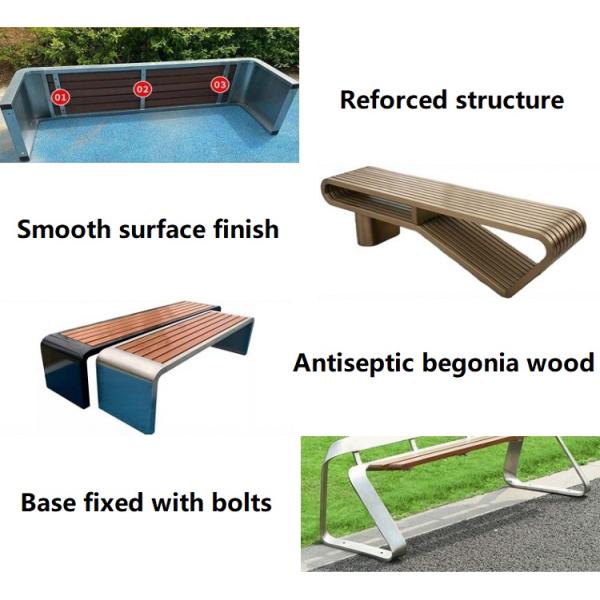 The outdoor metal bench has a SUS304 stainless steel frame with a silver finish and wood bench makes it a stylish and sturdy choice for any outdoor area. With its bright and matt surface finish, the metal outdoor furniture is sure to stand out and provide a comfortable place to sit. With its bright and matt surface finish, the metal outdoor furniture is sure to stand out and provide a comfortable place to sit.