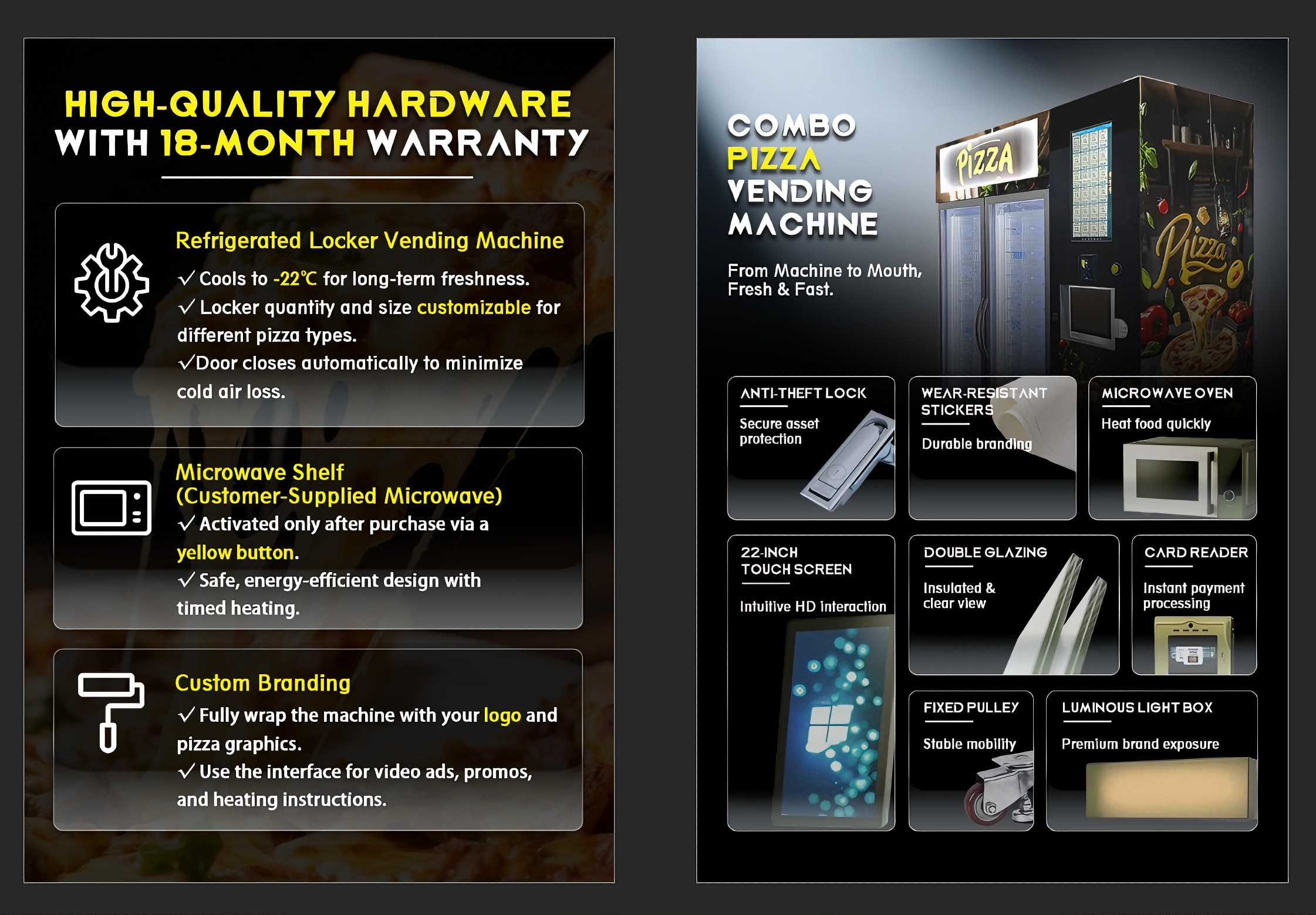 - Machines can be customized for size, internal layout, payment