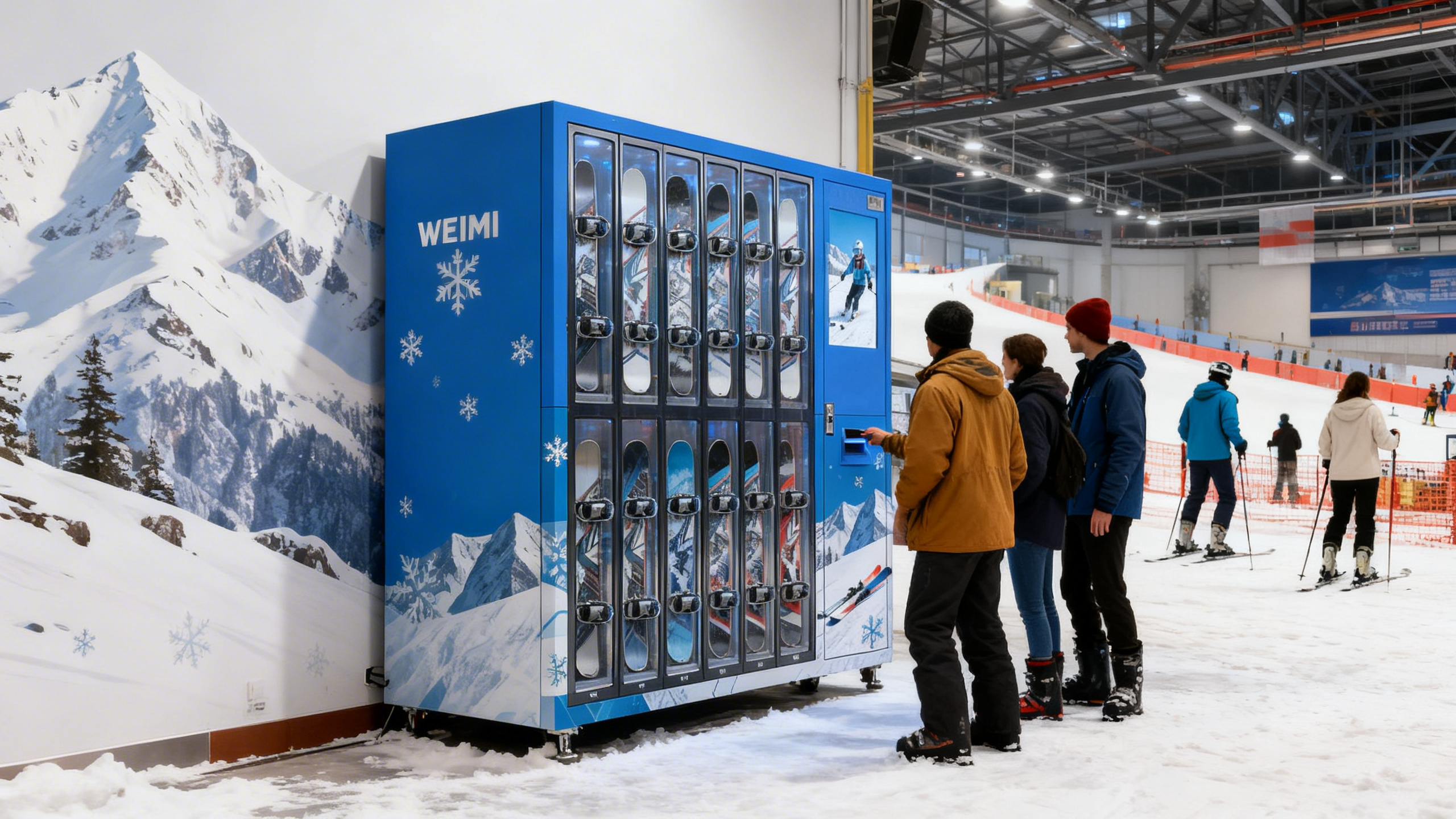Indoor ski resorts are all about the experience. Riders want to be on the snow, not stuck in a rental line. WEIMI makes renting as easy as buying a soda: